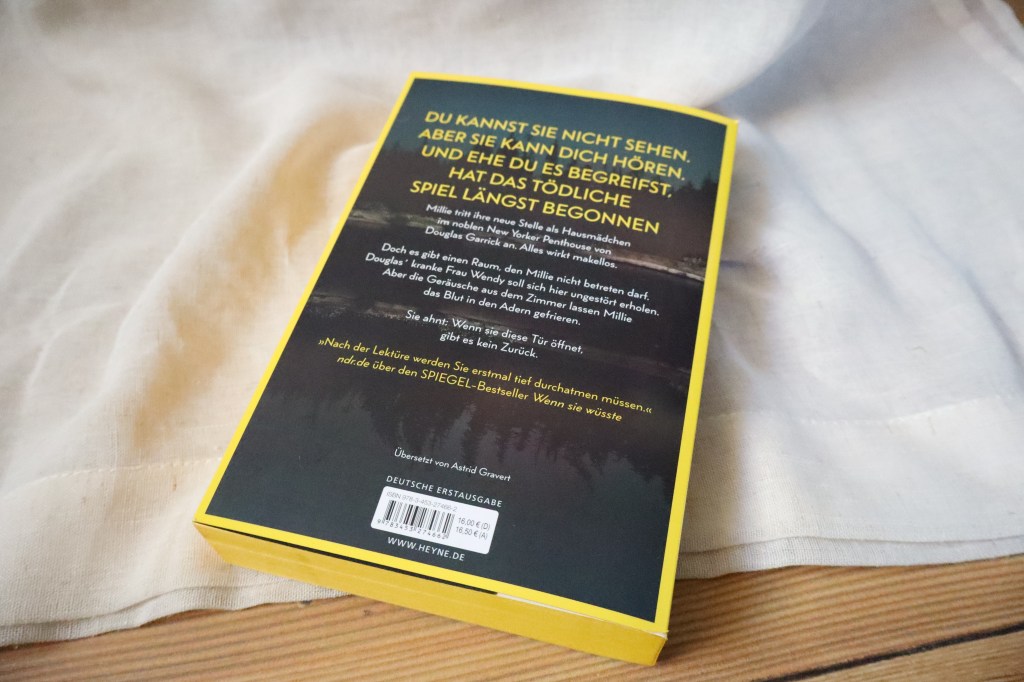 Erst einmal möchte ich den unglaublichen Schreibstil von Freida McFadden loben. Sie schreibt so mega spannend, dass ich das Buch wirklich nicht aus der Hand legen konnte. Seit über einem Jahr konnte ich kein Buch mehr zur Hand nehmen, nichts hat mich mehr „abgeholt“. Sie kann dich hören war quasi meine Rettung. Seit ich es gelesen habe bin ich wieder voll dabei. Und ja ich habe diesmal gleich alle Teile gelesen 😉